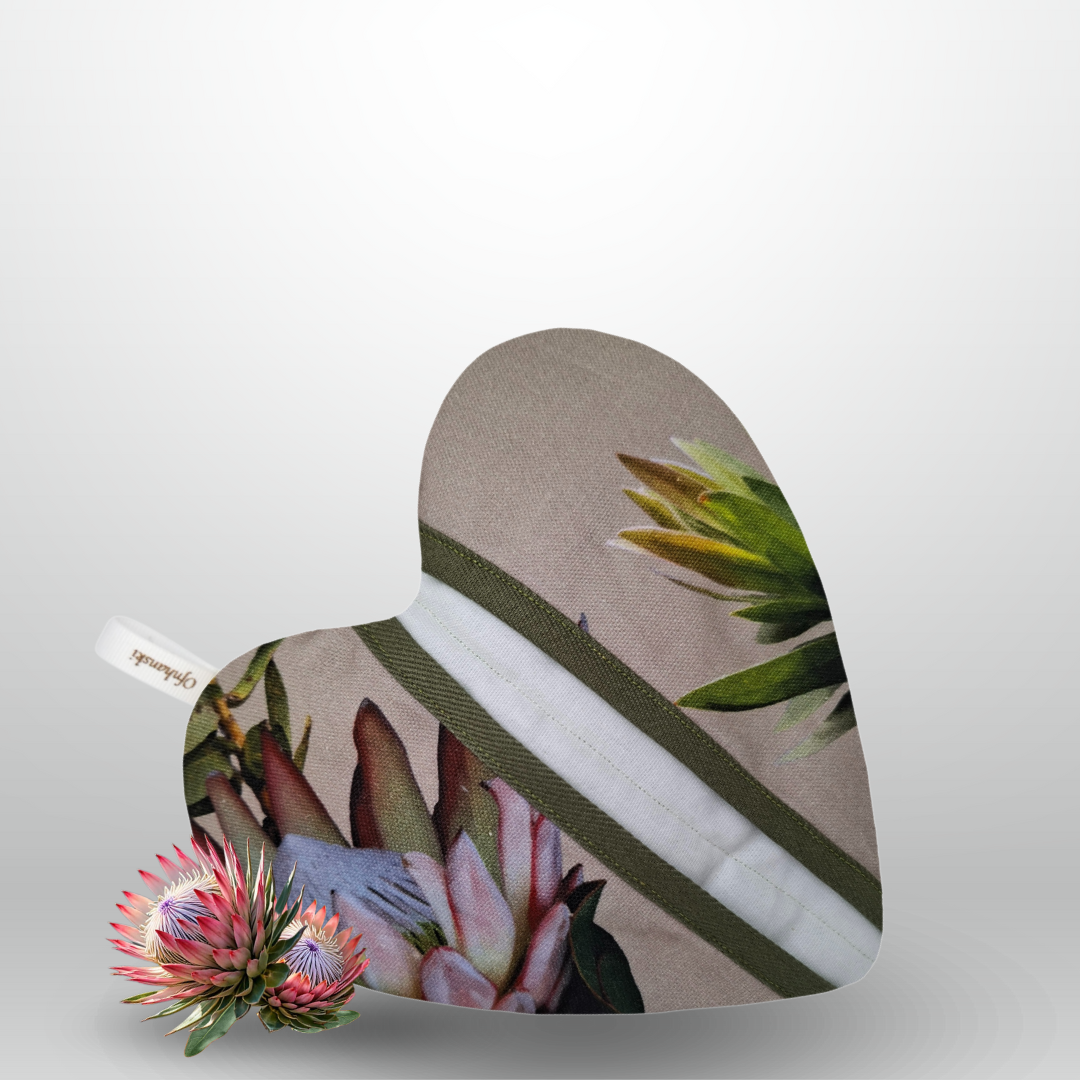Elevate your kitchen experience with the exquisite Protea Bloom - Oven Glove, designed for both style and functionality. Made from high-quality, heat-resistant cotton and lined with soft, breathable fabric for ultimate comfort and protection.